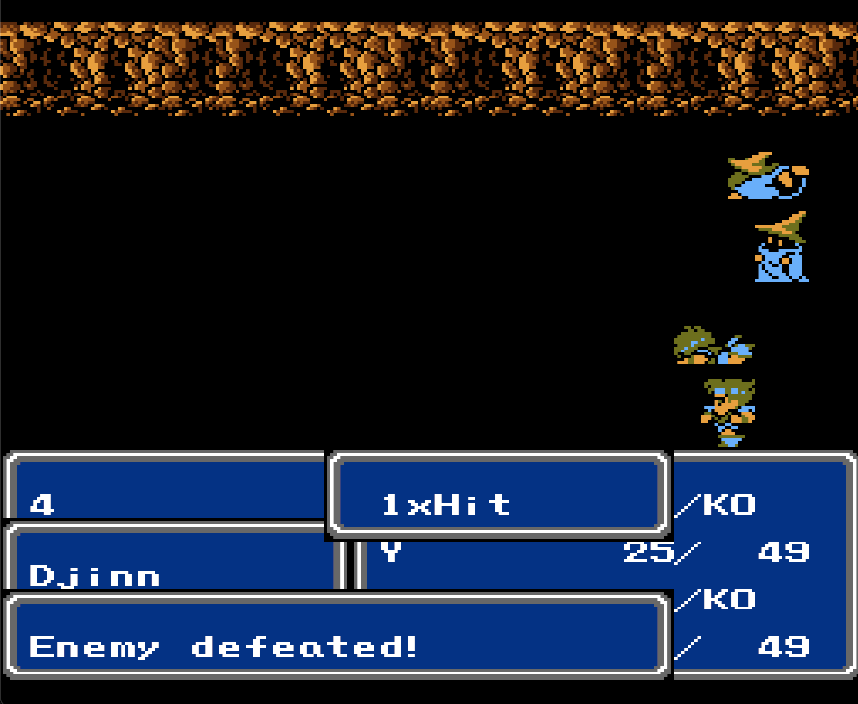 | Time Start: Naming your 4th character | Time Stop: After Djinn (or Griffon) disappears and โEnemy defeated!โ appears |